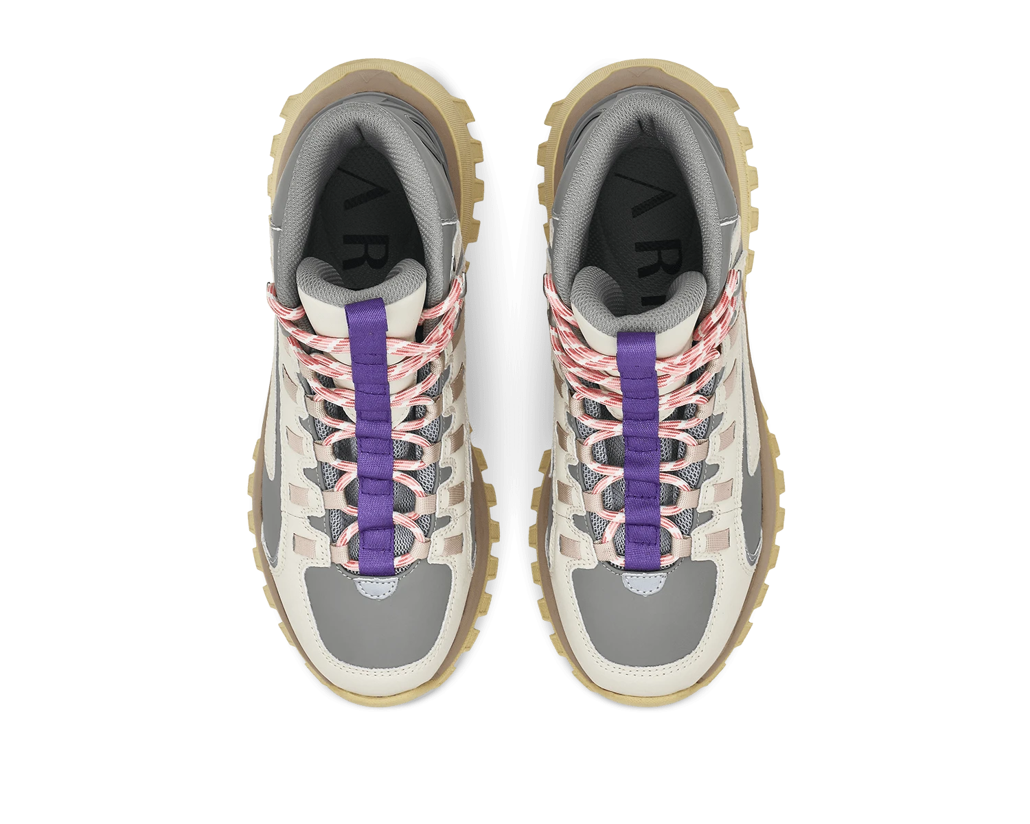 It is a perfect hybrid between the retro and more modern and clean. The graphic lines and almost sculptural look that creates the multi layered upper and the short vamp gives this style the perfect shape. Detailed custom designed looped lacing system, makes the design unique and reflective details on sides vamp gives the style a technical touch.