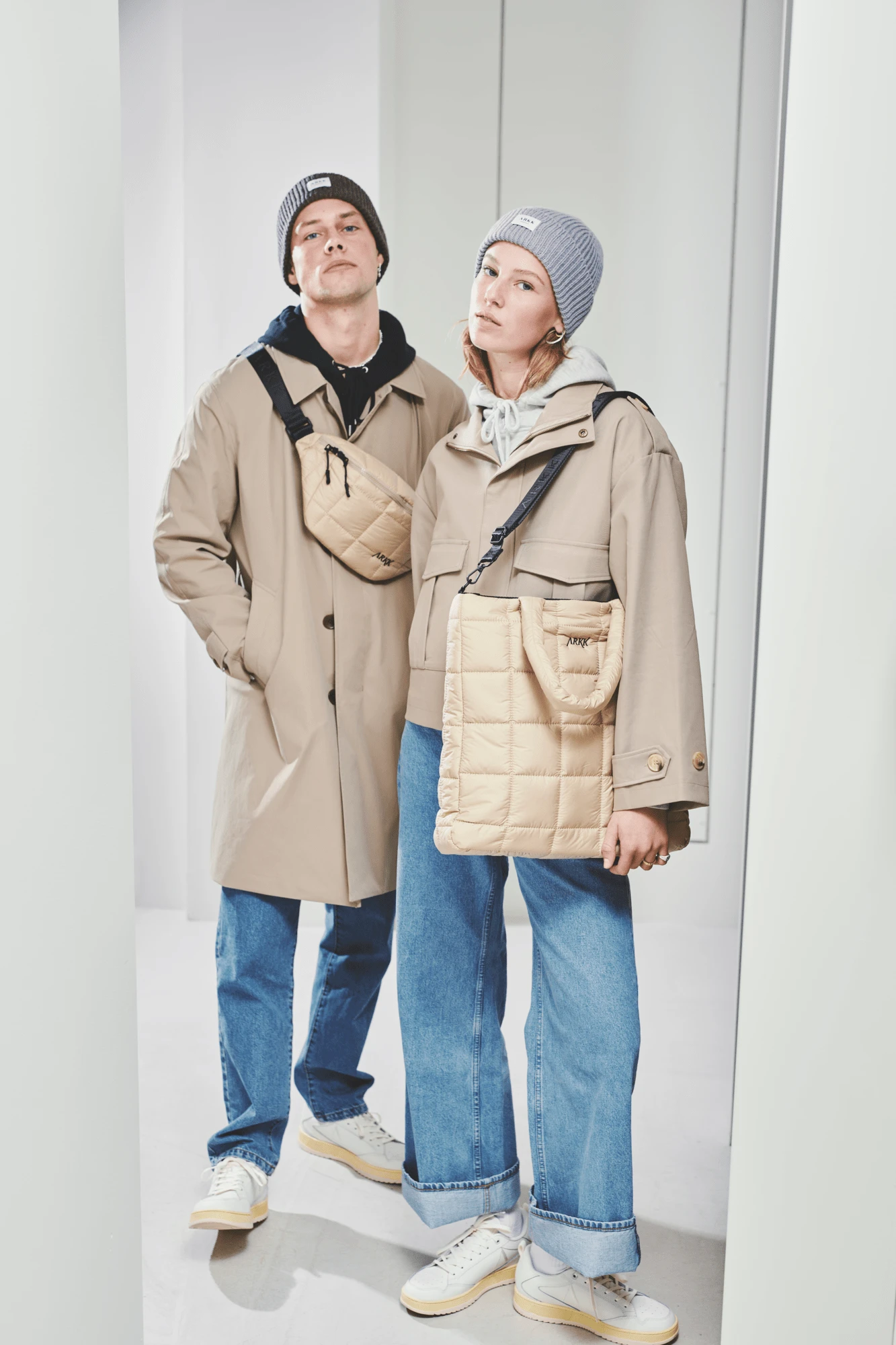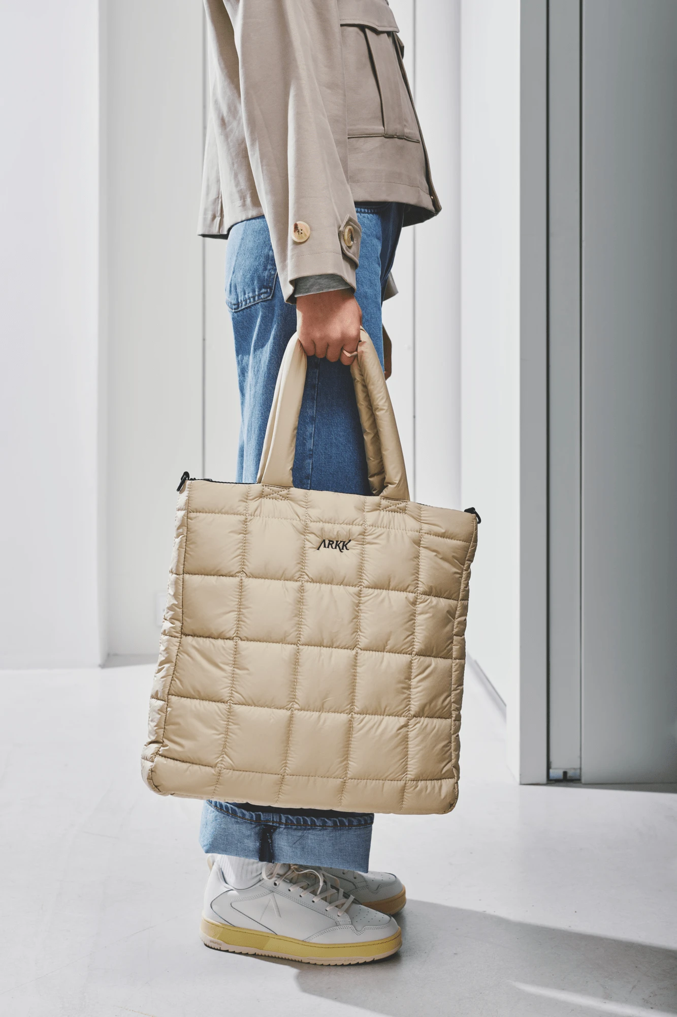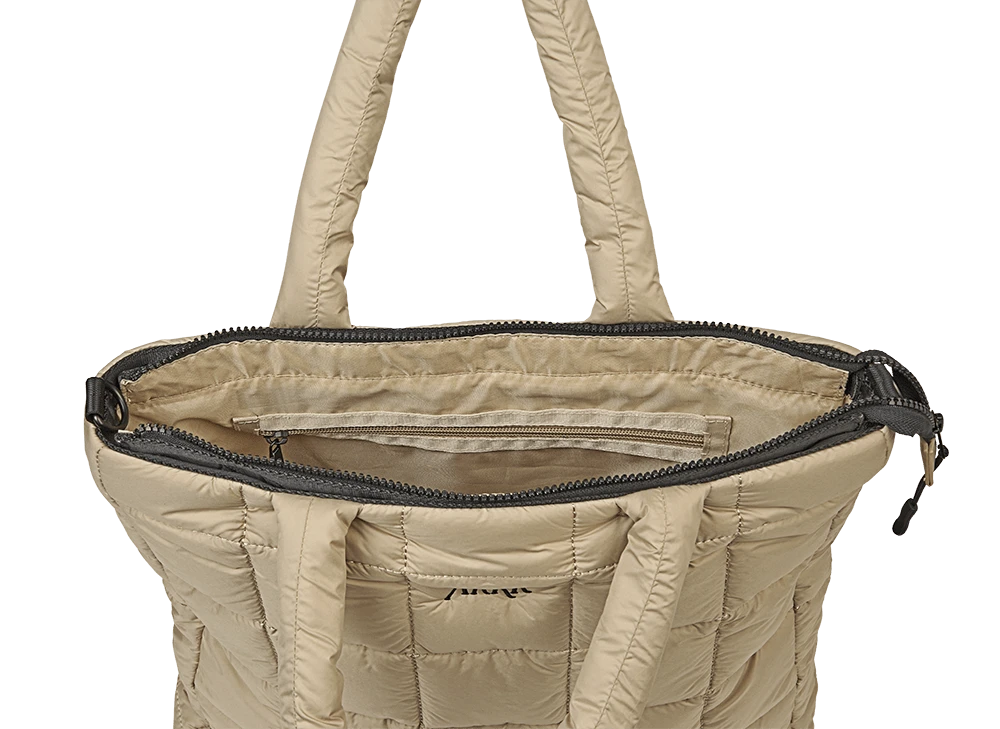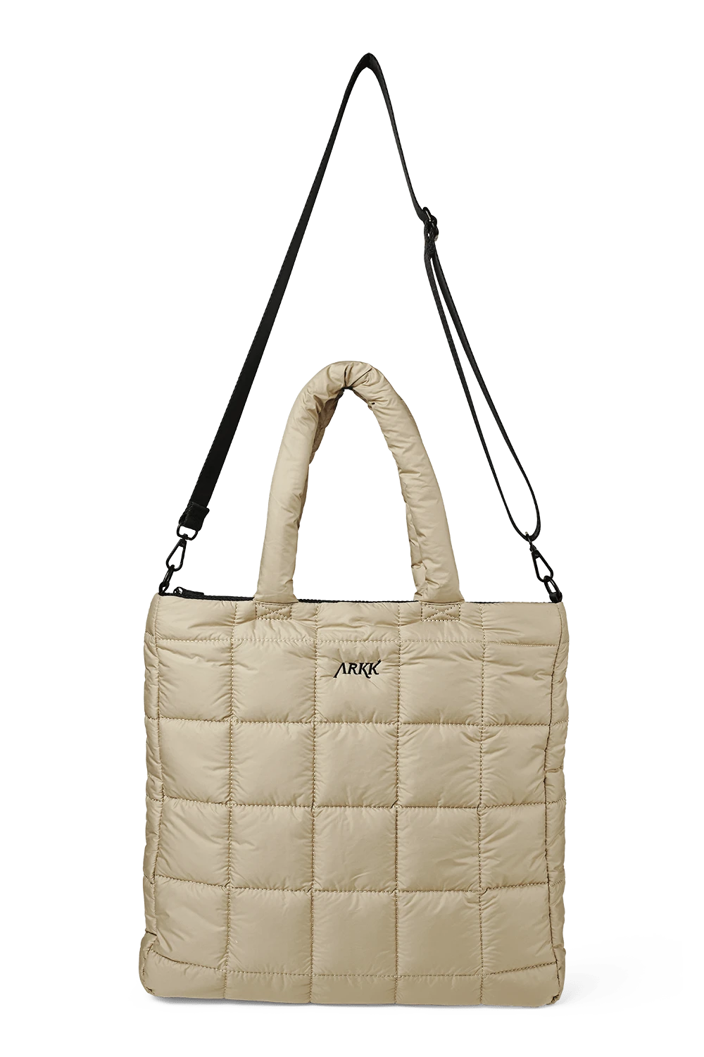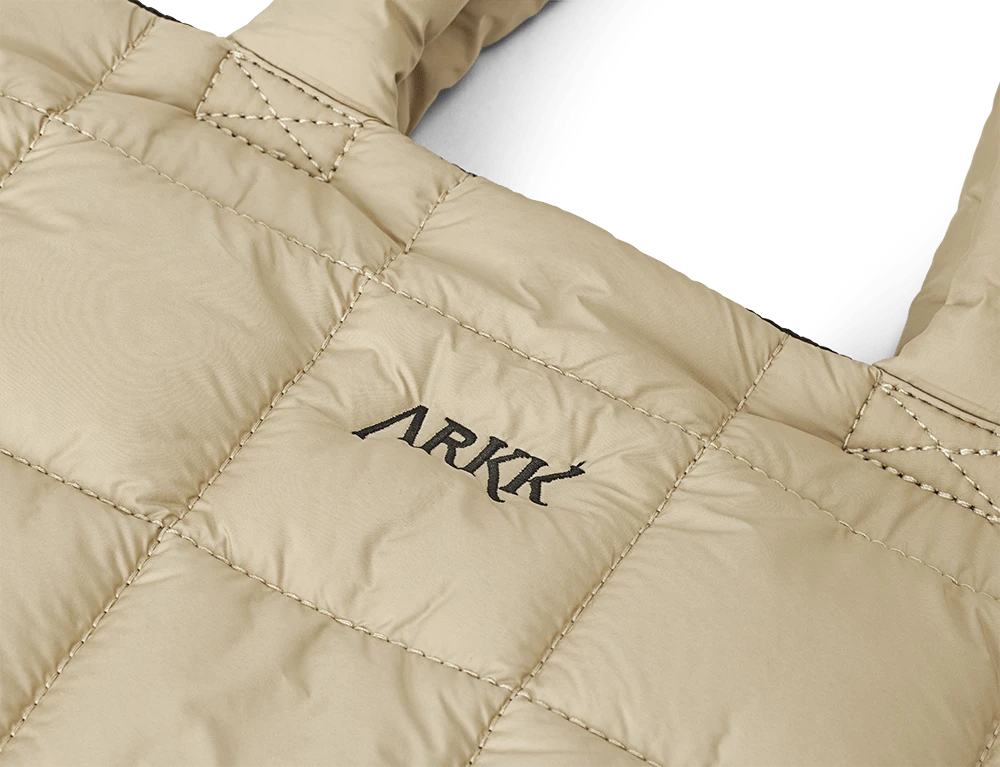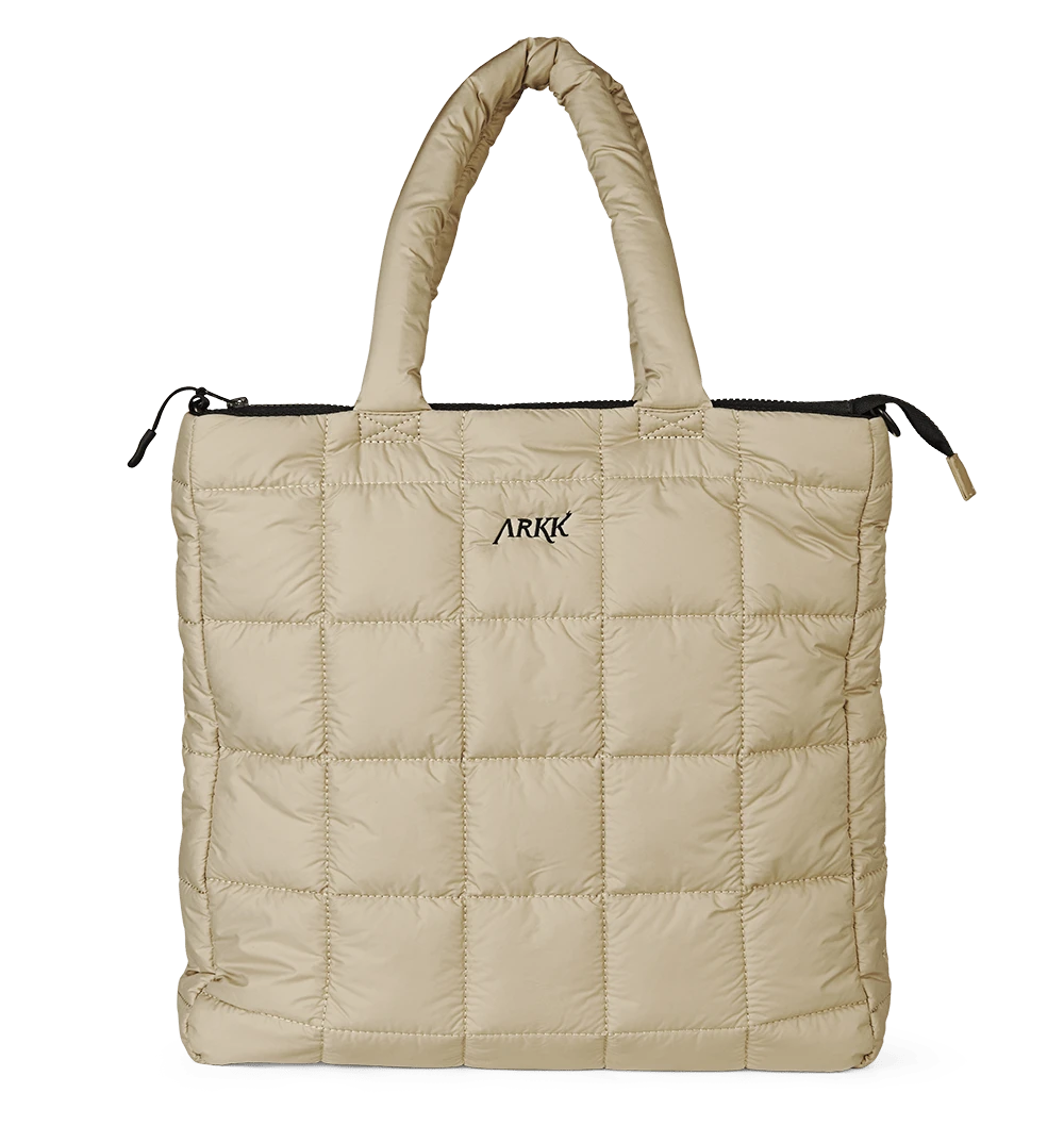 This ARKK Shopper Bag is made from soft polyester with quilted details, blending style and practicality. The main compartment includes two divided pockets and one zippered pocket. The top zipper keeps your belongings secure, while the adjustable crossbody strap ensures a perfect fit. It also fits a 15.4″ laptop, ideal for daily use and work.